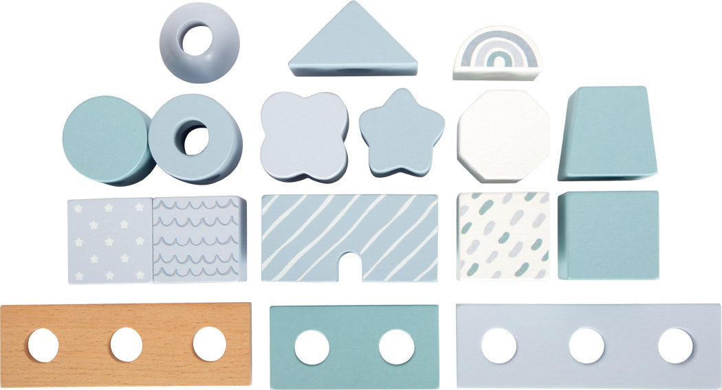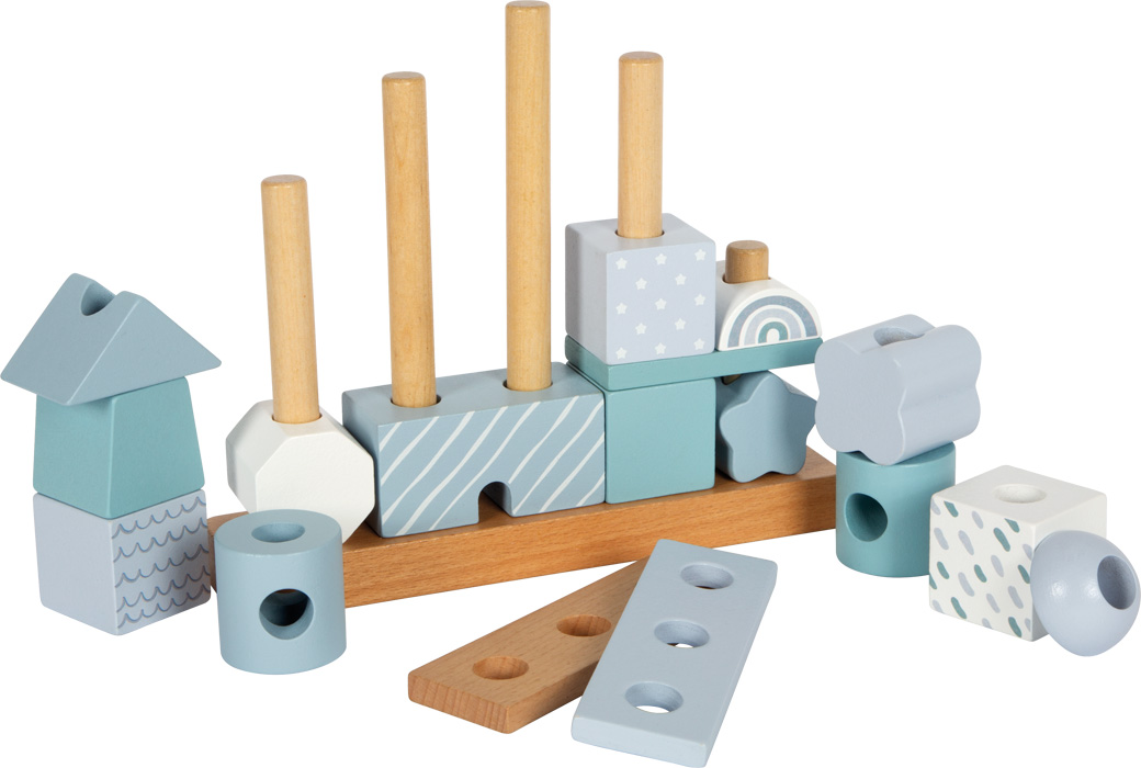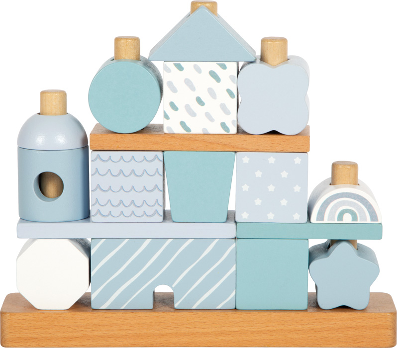 Dieses Stapelhaus ist viel mehr als nur ein klassisches Steckspiel. Mit seinen liebevoll gestalteten Bausteinen in verschiedenen Formen, Mustern und sanften blautönen lädt es kleine Baumeister dazu ein, immer wieder neue Architektur-Meisterwerke zu erschaffen.