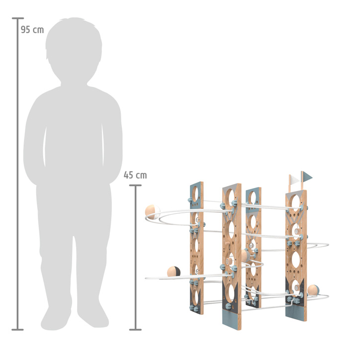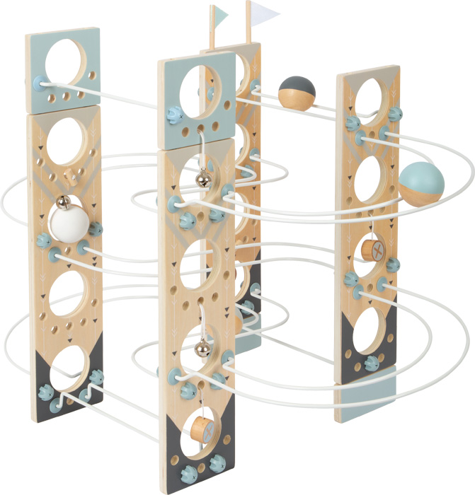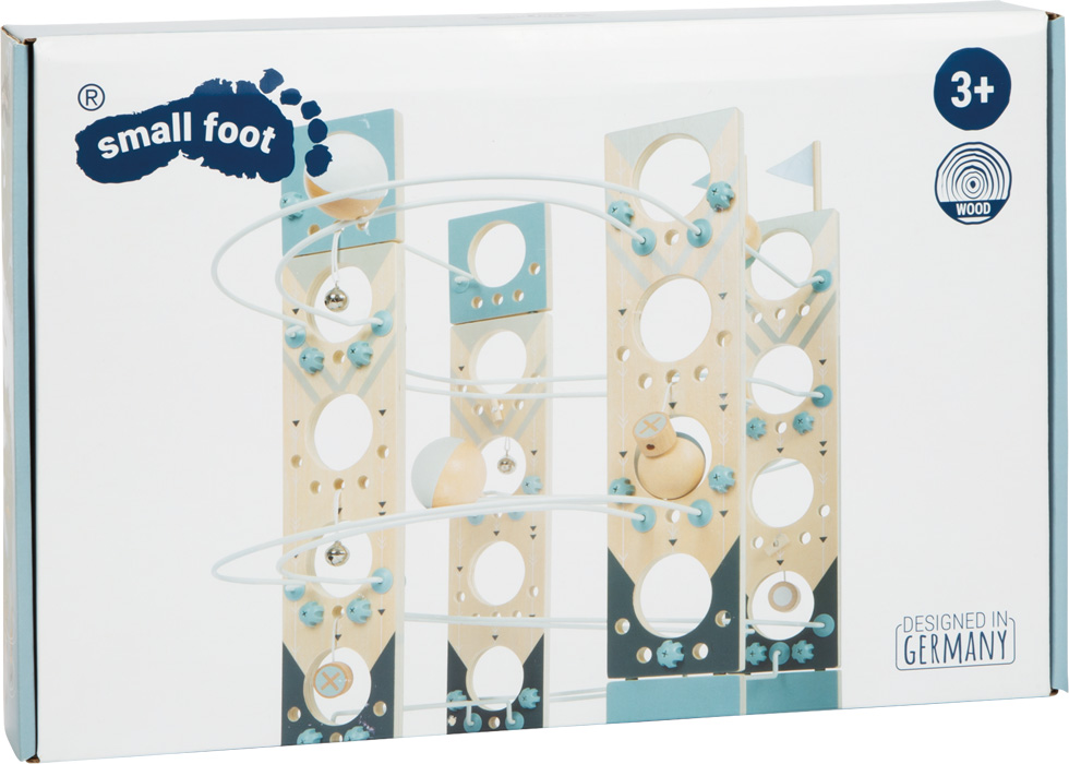 Mit der modularen Kugelbahn von small foot werden Kinder zu kleinen Ingenieuren. Das Besondere an diesem Set: Durch das clevere Aufbauprinzip lässt sich die Strecke immer wieder neu und individuell gestalten. Ob steile Abfahrten oder rasante Kurven – der Fantasie sind keine Grenzen gesetzt. Das dezente Design in trendigem Rauchblau und naturbelassenem Holz macht die Kugelbahn zudem zu einem echten Hingucker im modernen Kinderzimmer.