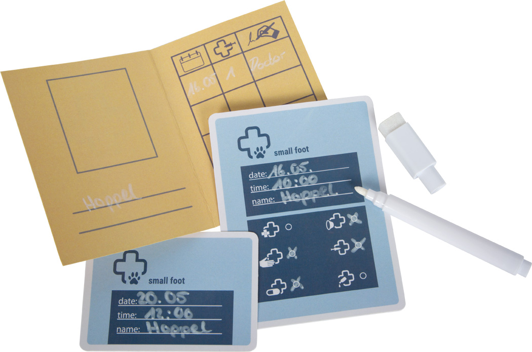 • ​Lerneffekt inklusive: Mit dem beiliegenden Impfpass, der Terminkarte und dem Patientenbogen (beschreibbar mit Folienstift) lernen Kinder spielerisch Abläufe und Verantwortung kennen.