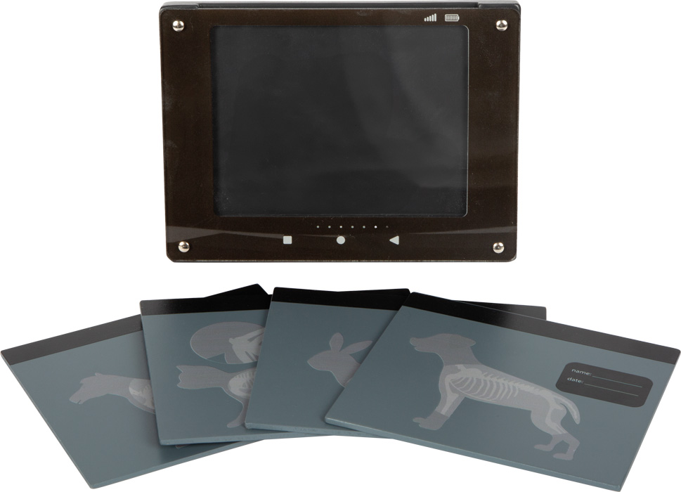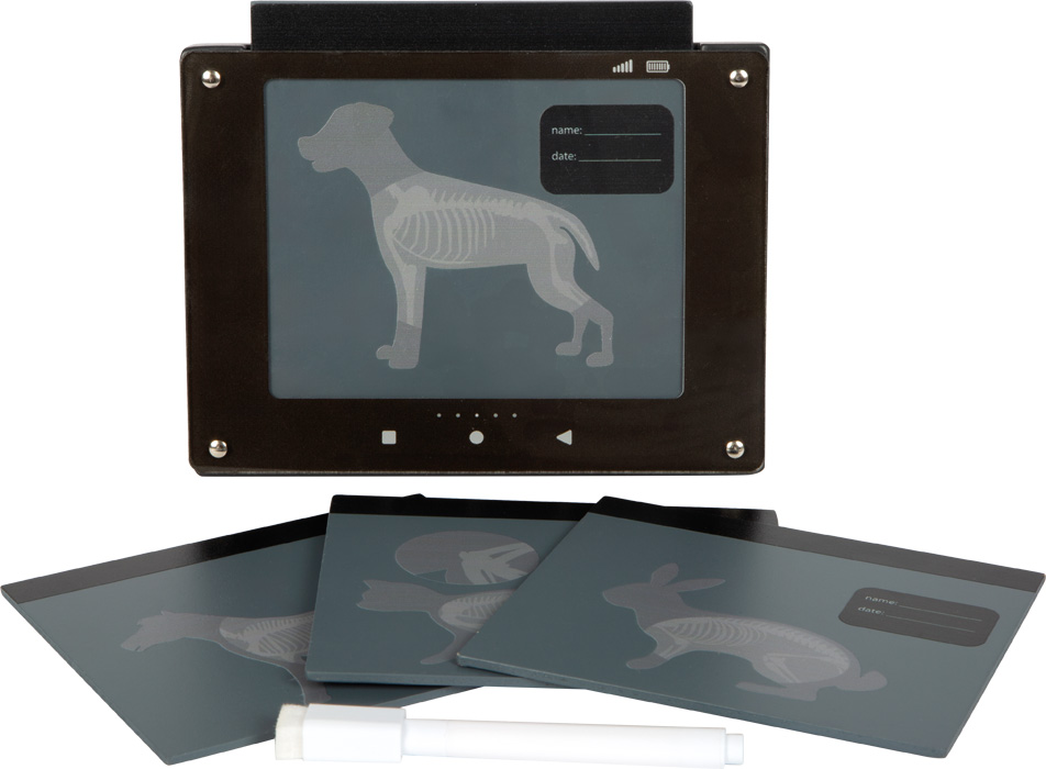 • Modernes Spiel-Tablet: Mit 4 beidseitig bedruckten Röntgenbildern (Hund, Katze, Hase & Pferd).